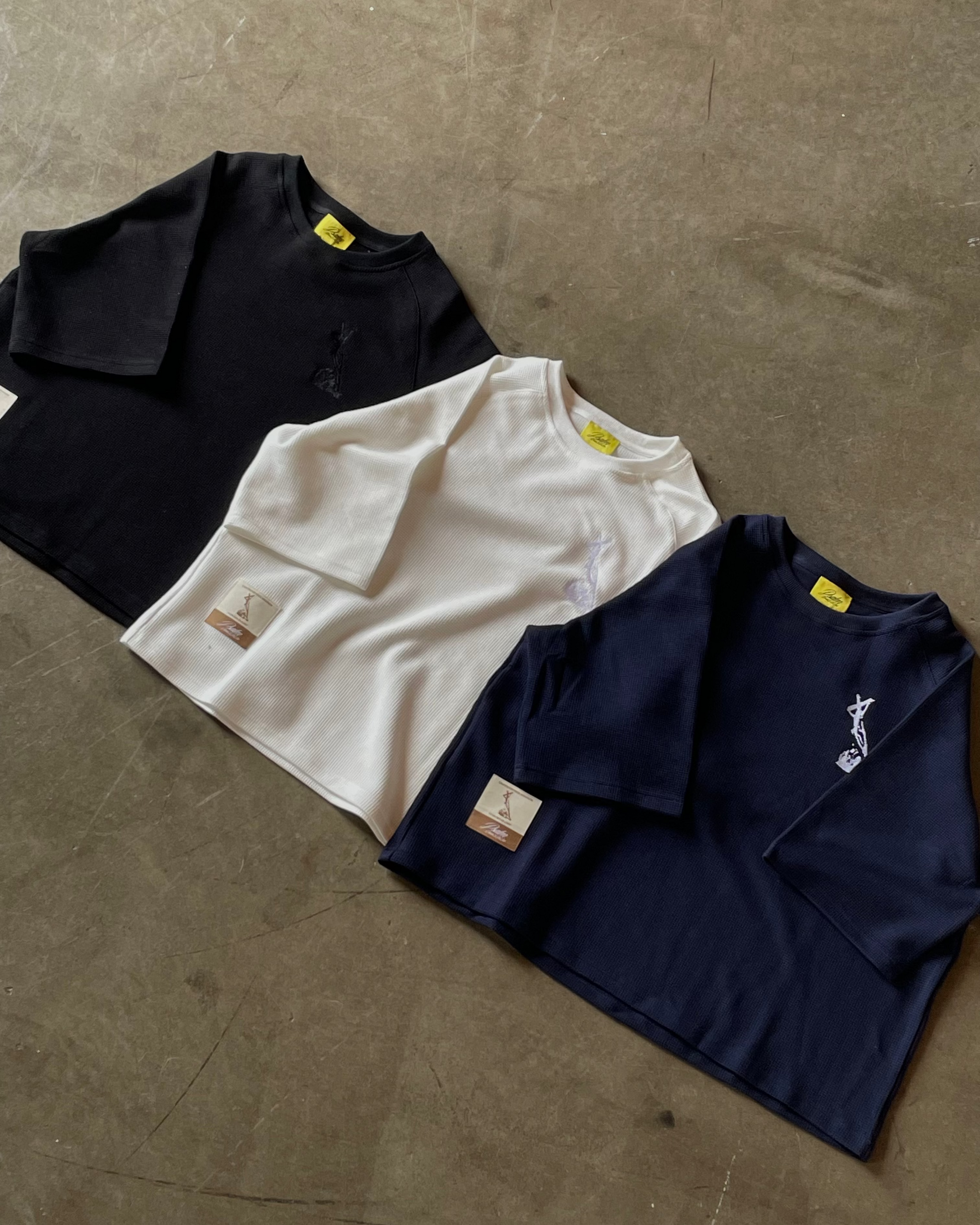 WAFFLE KNIT TEE - TRIPLE BLACK